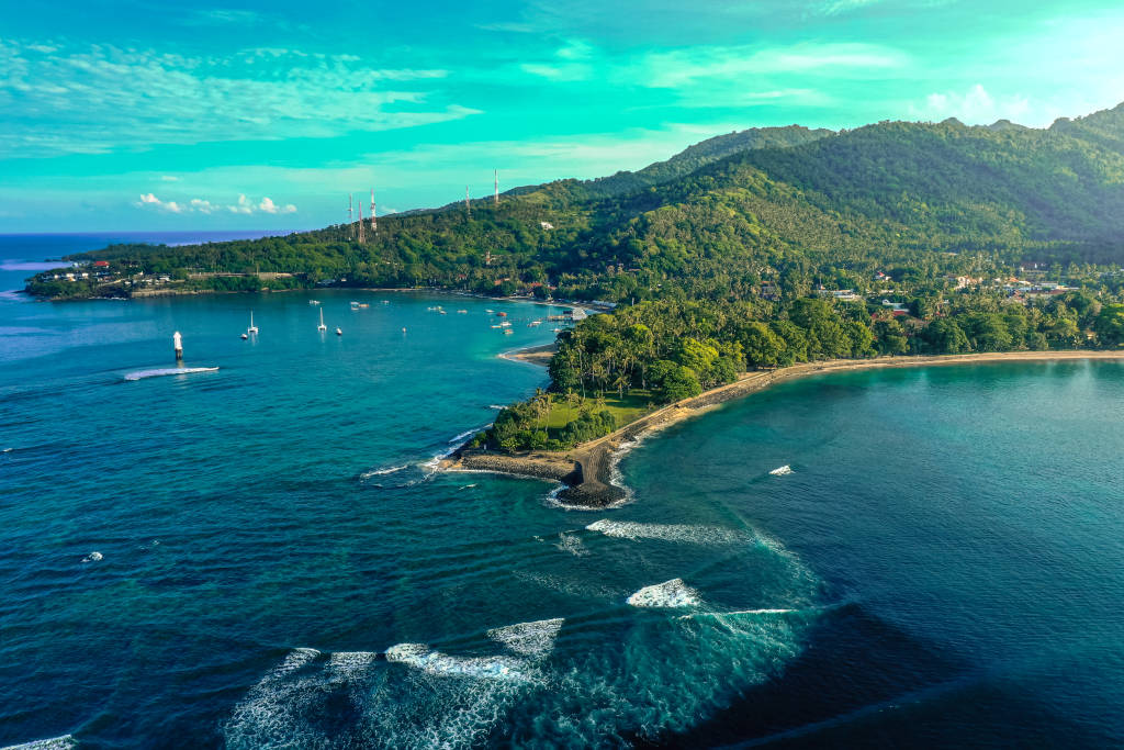Sumbawa, située à l’est de Lombok, séduit par ses paysages montagneux et ses plages ensoleillées. L’île est reconnue pour ses spots de surf exceptionnels, tels que Lakey Beach, Hu’u, et Maluk Beach. Avec moins de touristes que Bali, Sumbawa offre une atmosphère détendue et des vagues parfaites pour les amateurs de surf.